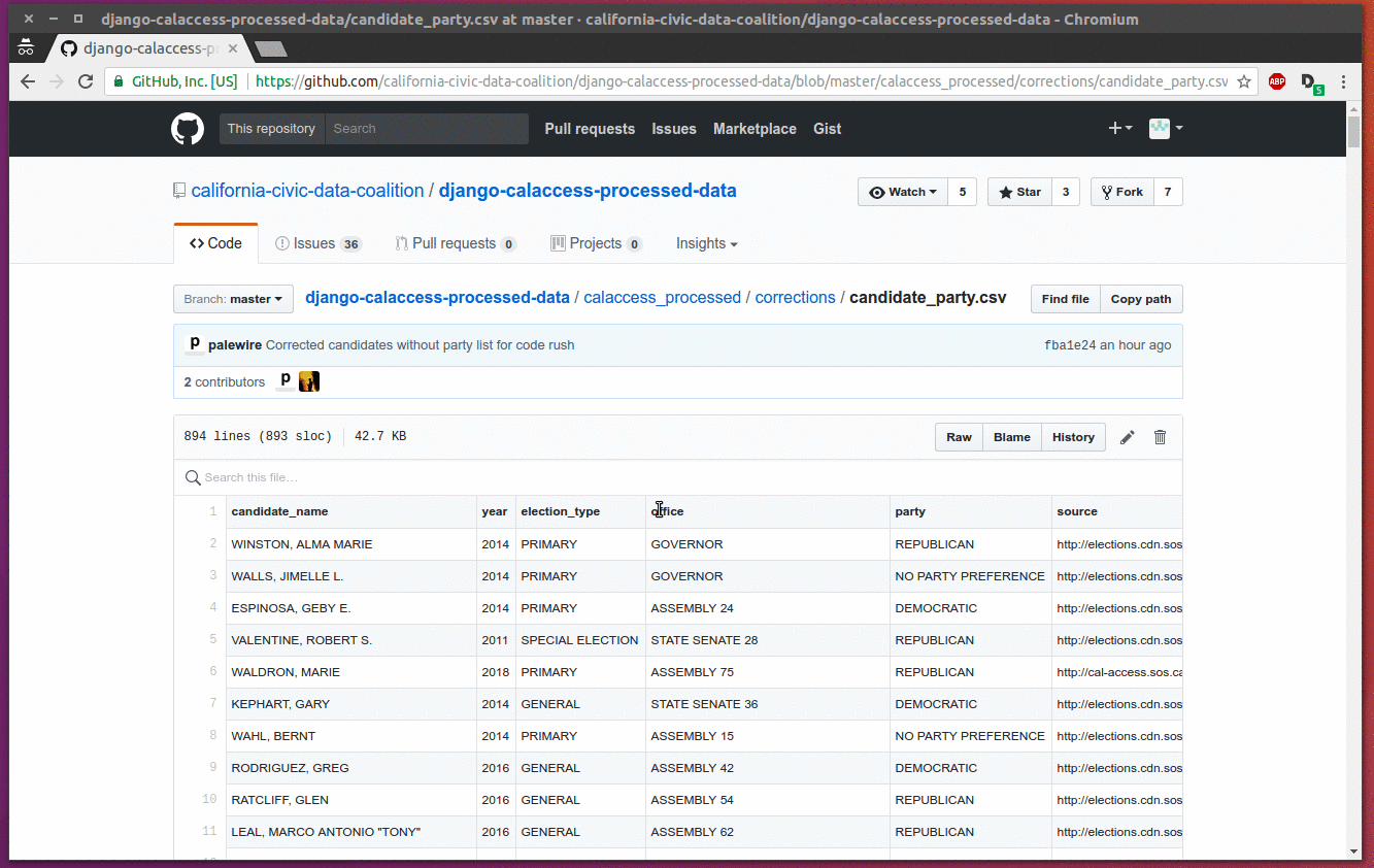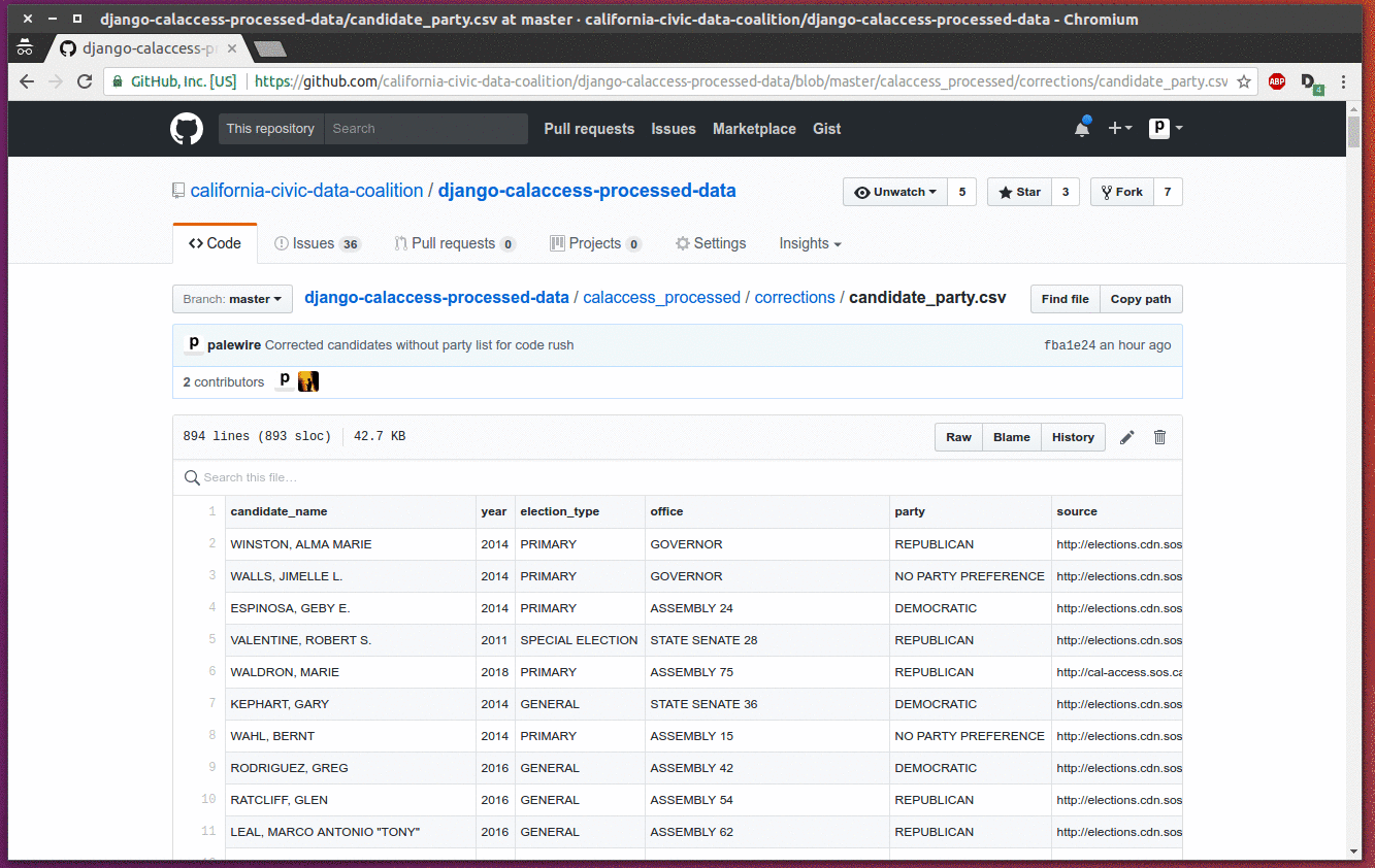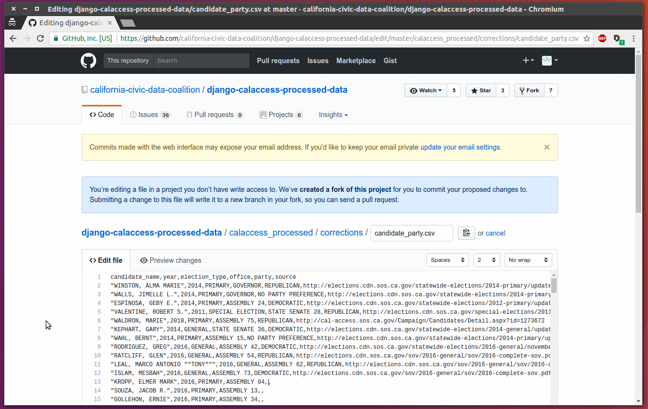 Now that you know the answer, return to the Coalition’s list of candidates on GitHub. This time click the small pencil button to the upper right of the data to begin editing the file.