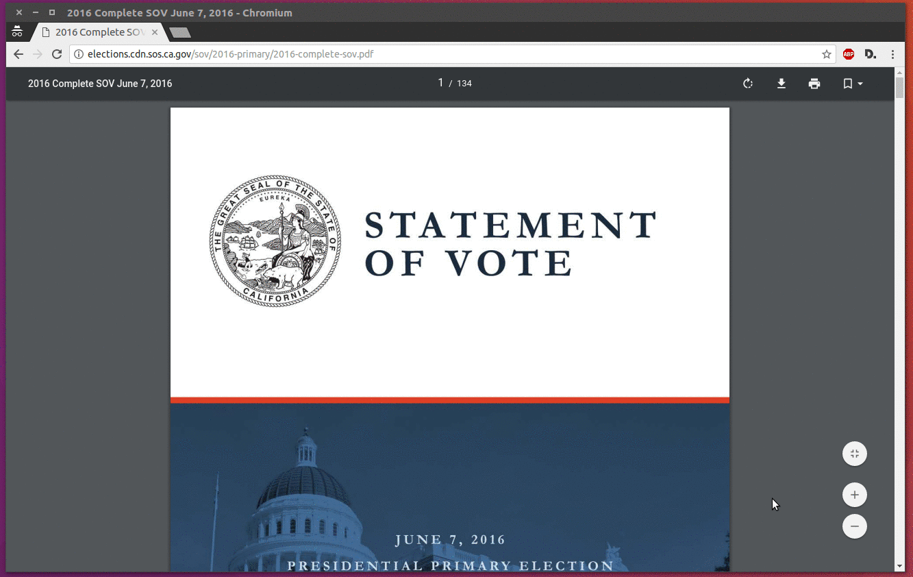 Navigate down to the page for the election linked to the candidate you’re working on. Find the “statement of vote” PDF file that contains the official results.