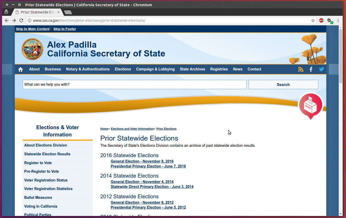 Visit the “Prior Elections” page of past results maintained by California’s secretary of state.